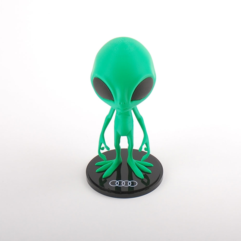 Acrylic plexiglas and PLA ALIEN figure made ad-hoc with AUDI campaign.