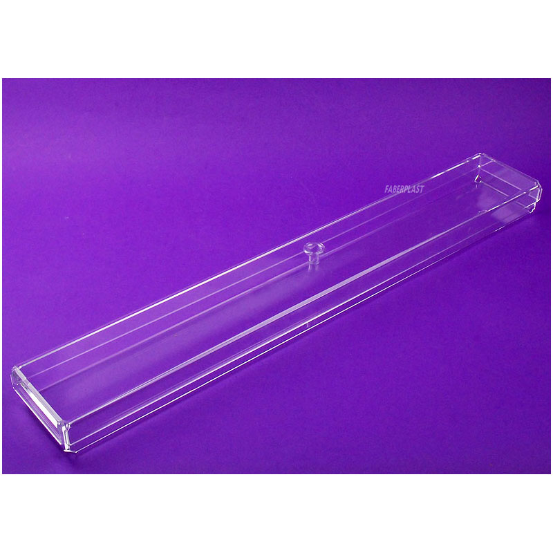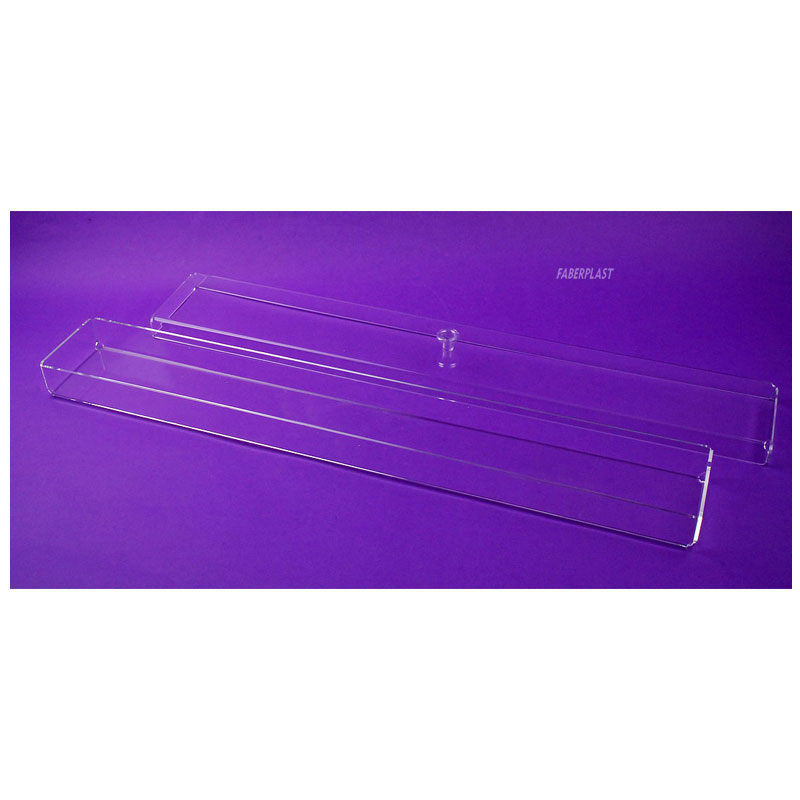 Acrylic plexiglas box extra long with lid and transparent knob. Manufactured in a customized way to introduce products, with plates of transparent methacrylate (Plexiglas-pmma) of 4 mm. of thickness.
