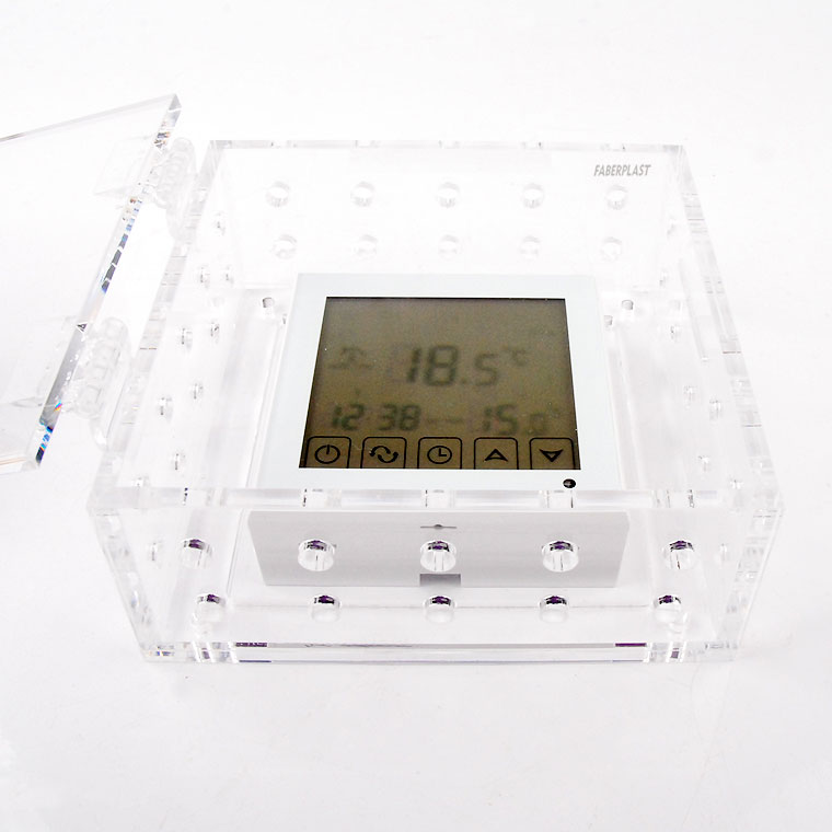 Safe-Box thermostat with locking made of clear perspex (Plexiglas – PMMA).