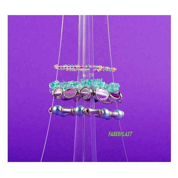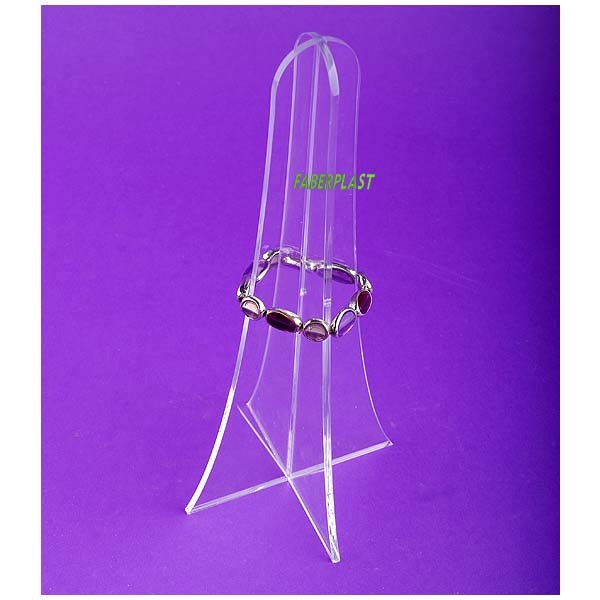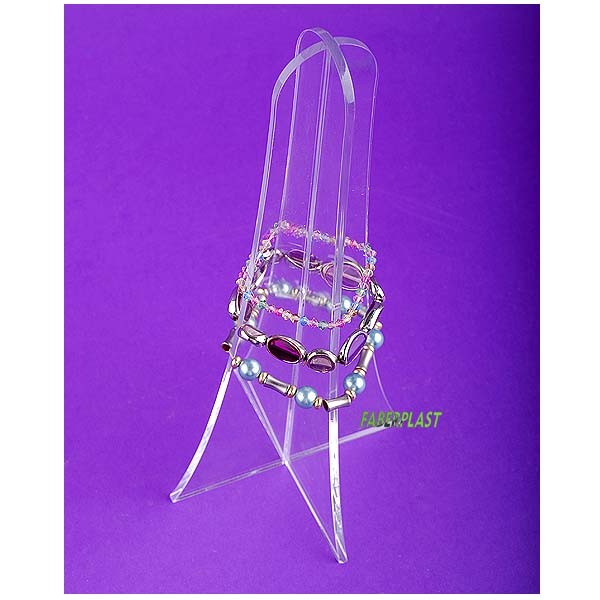 Acrylic plexiglas exhibitor for jewelery and for all types of bracelets of any size, thanks to its tapered shape allows you to place different sized bracelets.
