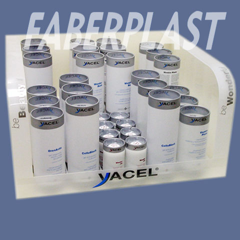 Acrylic plexiglas PLV display exhibitor YACEL for perfumes made ??with ice white methacrylate ( Perspex - PMMA ) with silkscreen inks three.