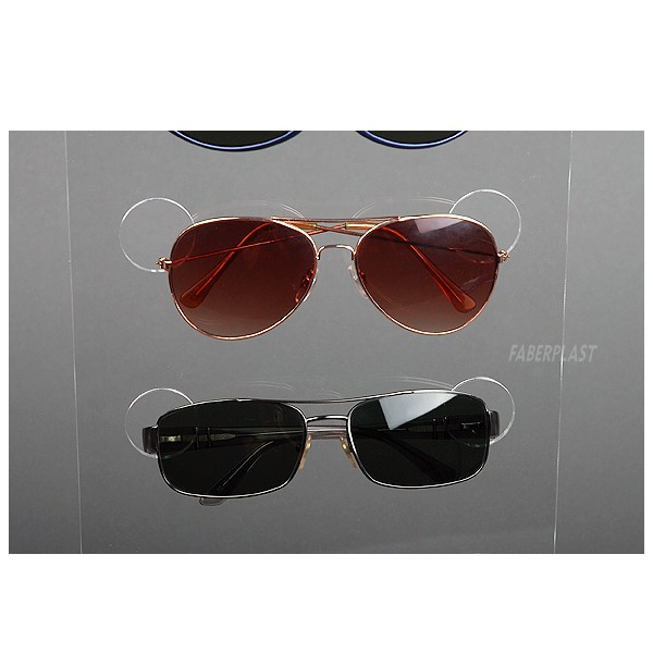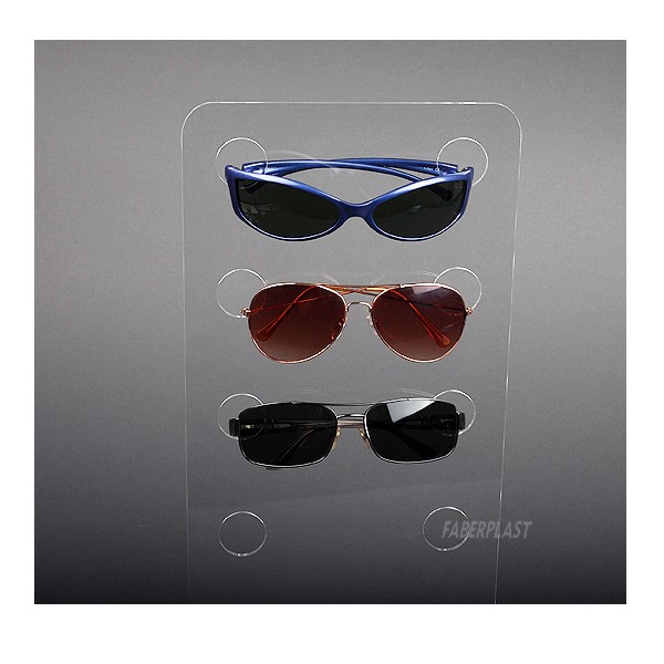 Display "Solera" made in acrylic Plexiglas (Perspex - PMMA) able for the exhibition of sunglasses in the point of purchase. Designed to several models of glasses (wide or narrow arms).