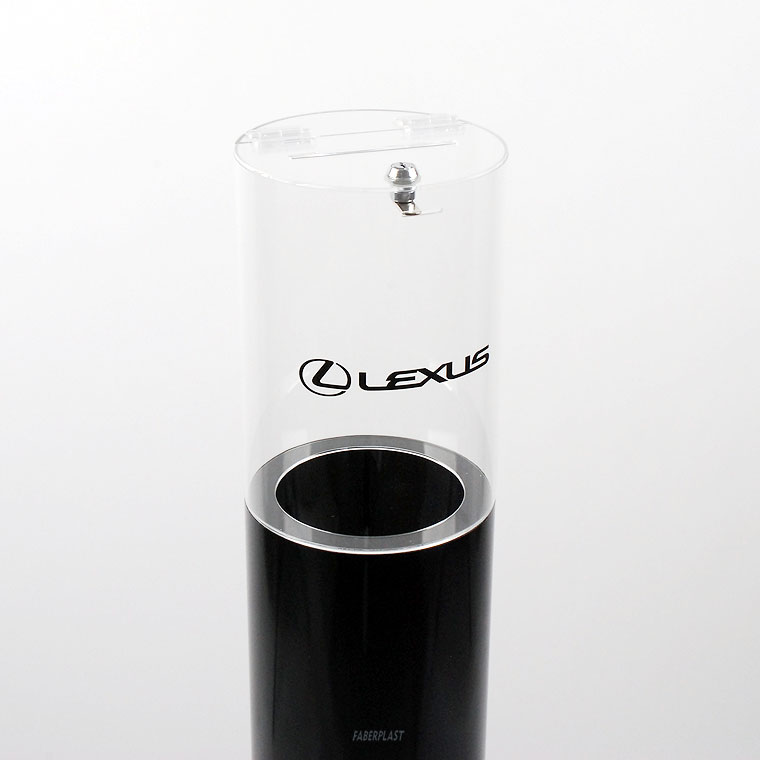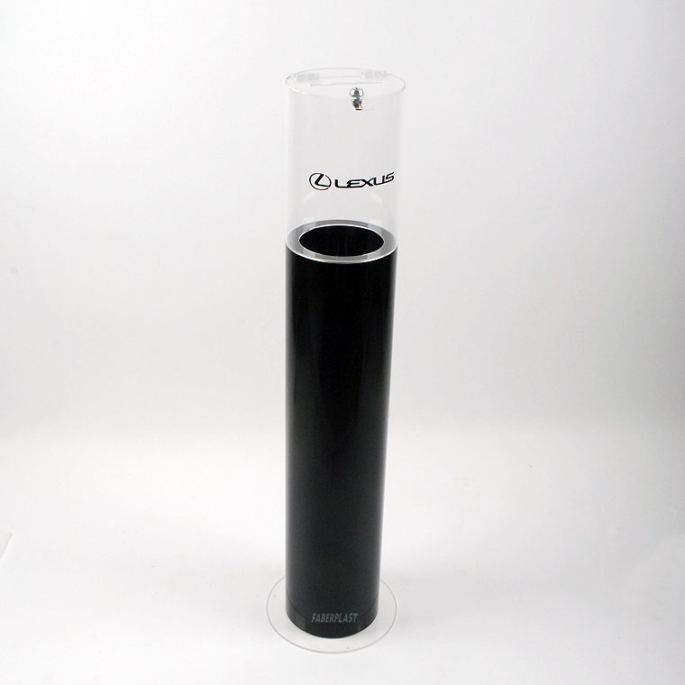 Perspex Urn in cylindrical format made to measure for the prestigious vehicle manufacturer LEXUS.