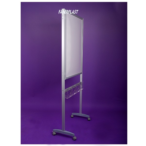 It has a folding frame and protective sheets to contain charts or posters.