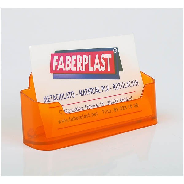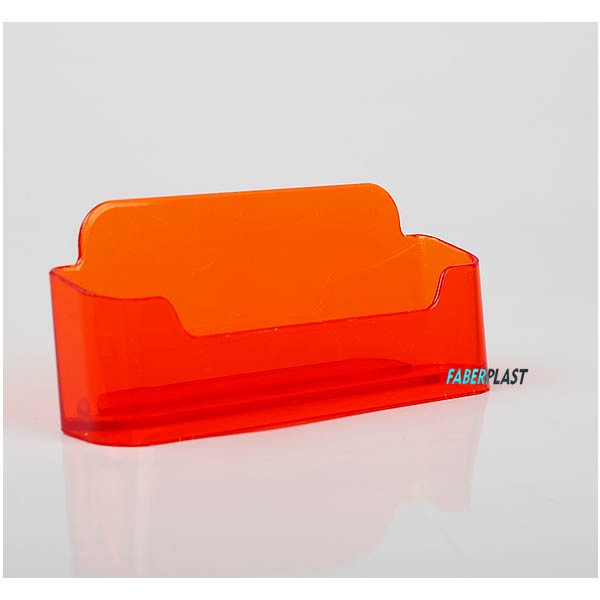 Business card Holder horizontal format,designed for desktop placement.Made in translucent orange polystyrene, able for all kind of business cards of 10,5 cm length maximum (the height of the business card may be variable, but it is not recommended to use cards bigger than 12 cm).