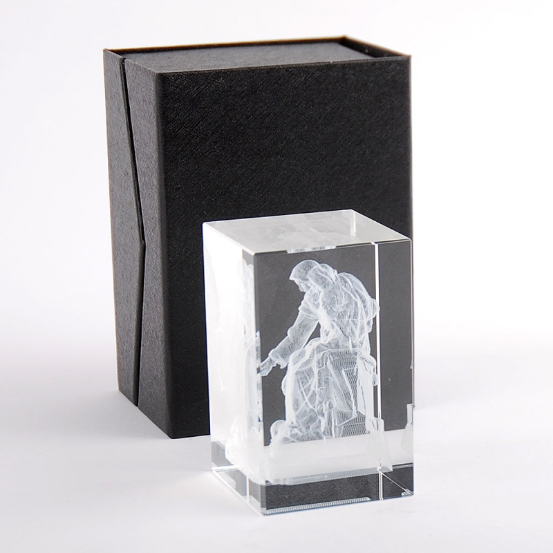 3D engraved glass cube made to measure