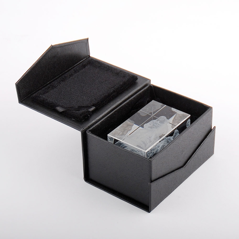 Transparent cubes handmade with glass and special corporate gift box. With internal 3D laser engraving with image and text according to the design requested by the client. Solid optical glass with technology by means of thousands of micro-cracks inside the glass to achieve a surprising sharpness and detail. Made in Spain.