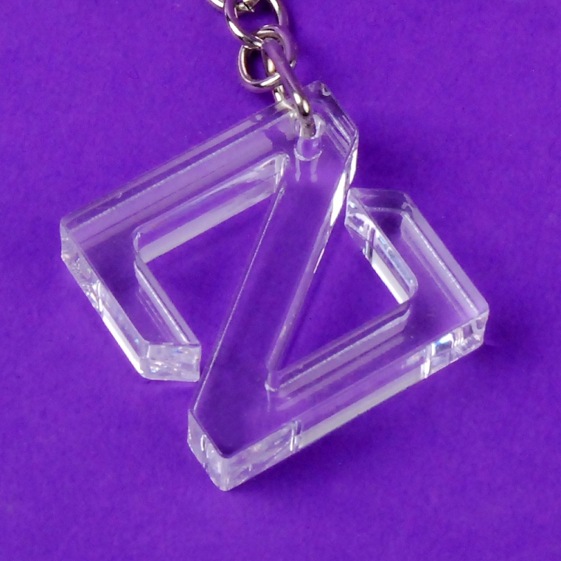 Acrylic plexiglas Keyring made for the company AENOR. Plates made of transparent methacrylate (Plexiglas-PMMA) silhouetted shaped logo laser client.