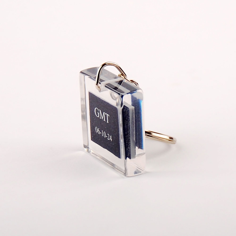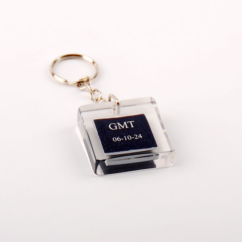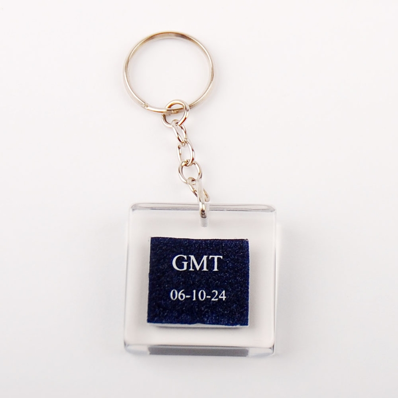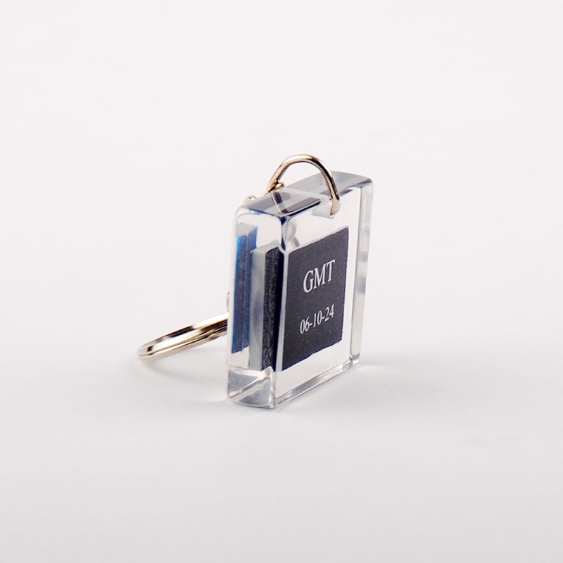 GMT key rings with occluded plate made to measure in transparent resin.