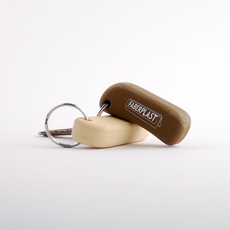 Customised PLA wood key rings made to measure with FABERPLAST design.
