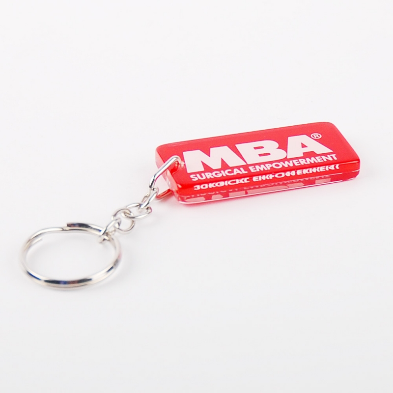 Plexiglas keyring custom made for the company: MBA SURGICAL EMPOWERMENT.