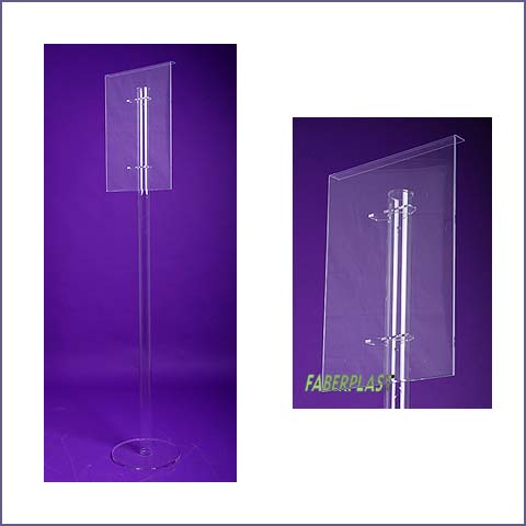 Lectern for exhibitions and points of sale (plv) manufactured entirely in transparent perspex (plexiglas - pmma) and with a leaf-holder display of methacrylate for placement of information or advertising in all types of environments, with the possibility of demotating and easy removal and placement of documents in top display.