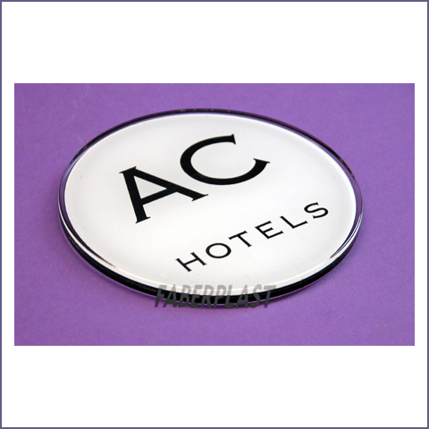 Coaster AC HOTELES, made in transparent methacrylate (Plexiglas-PMMA). With inner decoration of logotype.
