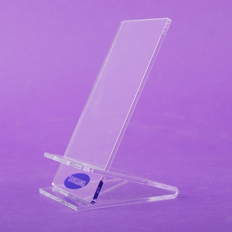 Plexiglas display stand made ad-hoc for mobile telephony and smartphones from the SAMSUNG company.