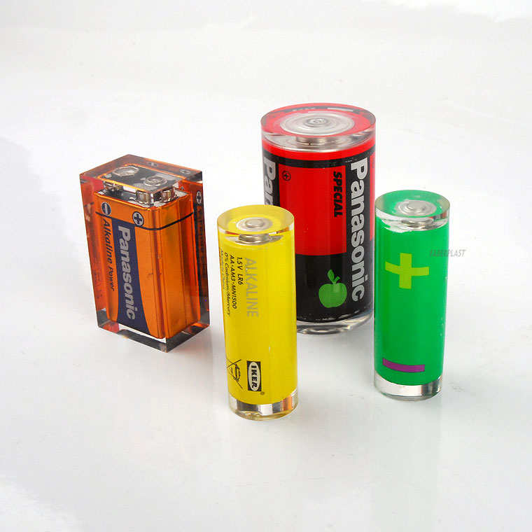Occlusion in resin of piles of different formats and sizes. Made with resin blocks occluded in a hermetic and compact form that does not allow the recovery of the product, nor the degradation of the same.