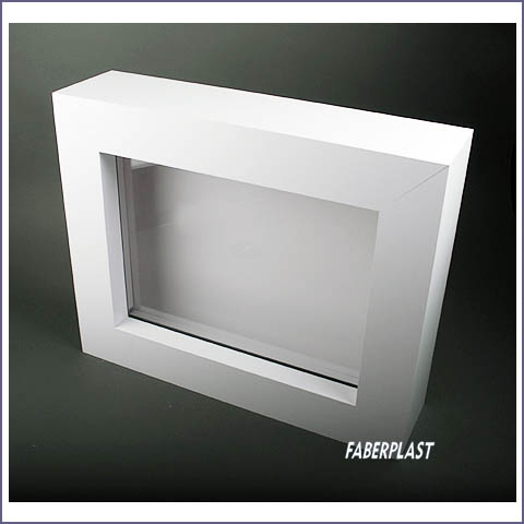 Special frame box as for protection and safety of artwork and special teams. Made of clear acrylic plexiglas (perspex-PMMA) and white foamapan (pvc foam).