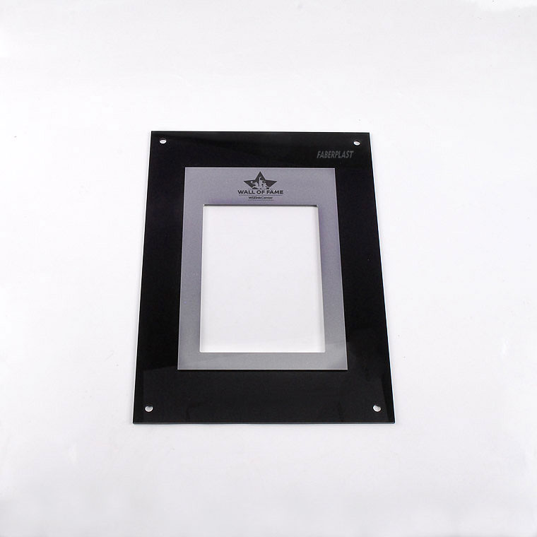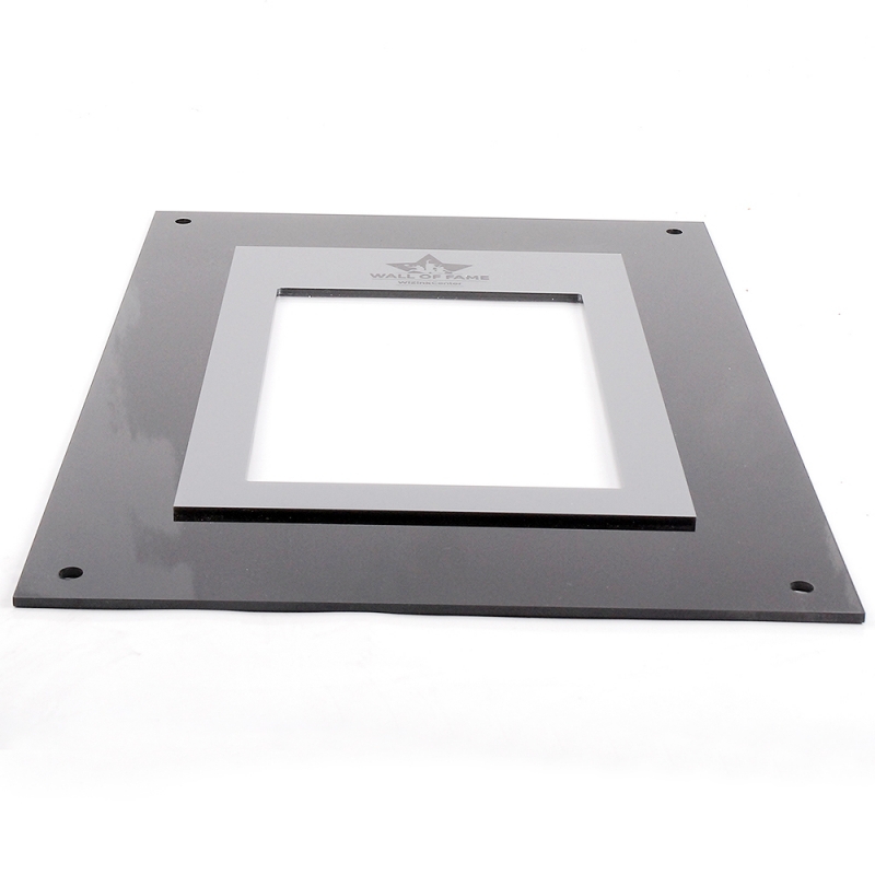 Manufacture with black and silver gray perspex plates (Plexiglas-pmma) with logo and texts printed digitally on top with black UV inks.