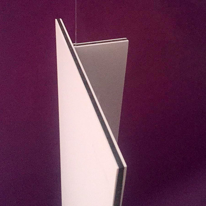Made with transparent Perspex plates (Plexiglas-pmma) and matt white foampan (foamed pvc).