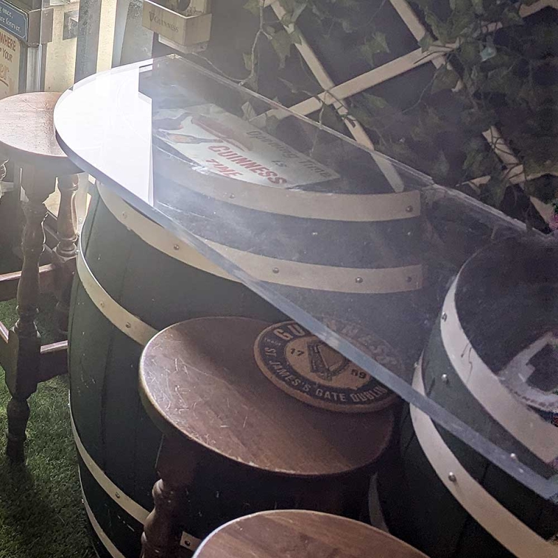 Custom-made acrylic plexiglas plates for BARREL tables in restaurants.