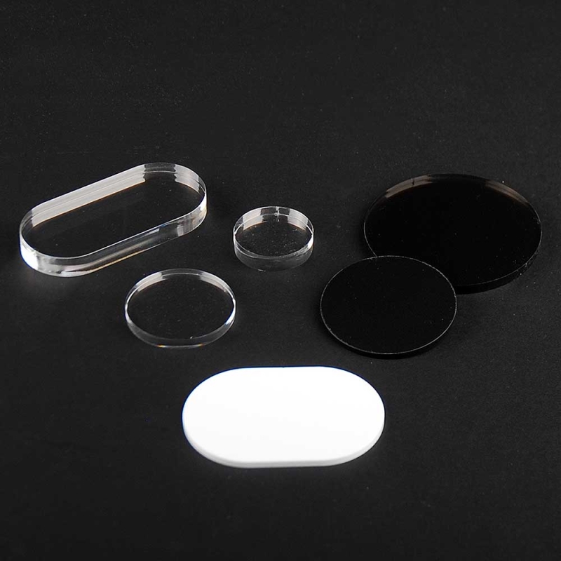 Made with transparent, white, smoke black and matt/gloss black perspex plates (Plexiglas®-pmma) from 3 to 10 mm thick.