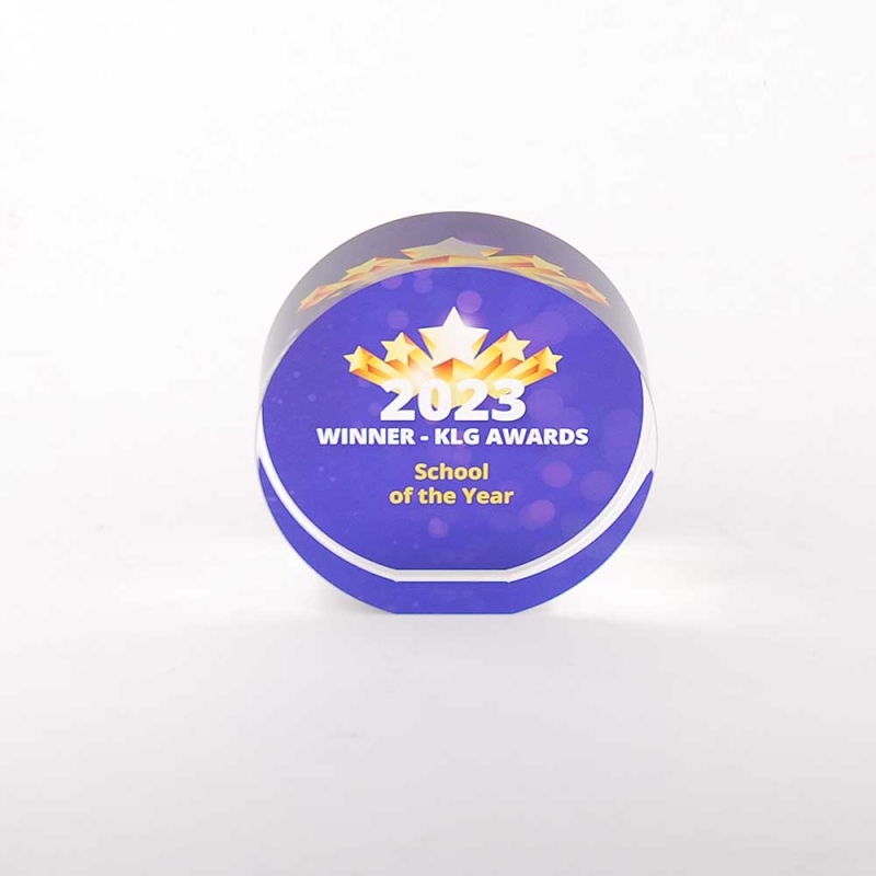 Acrylic plexiglas block made ad-hoc for the KLG awards.