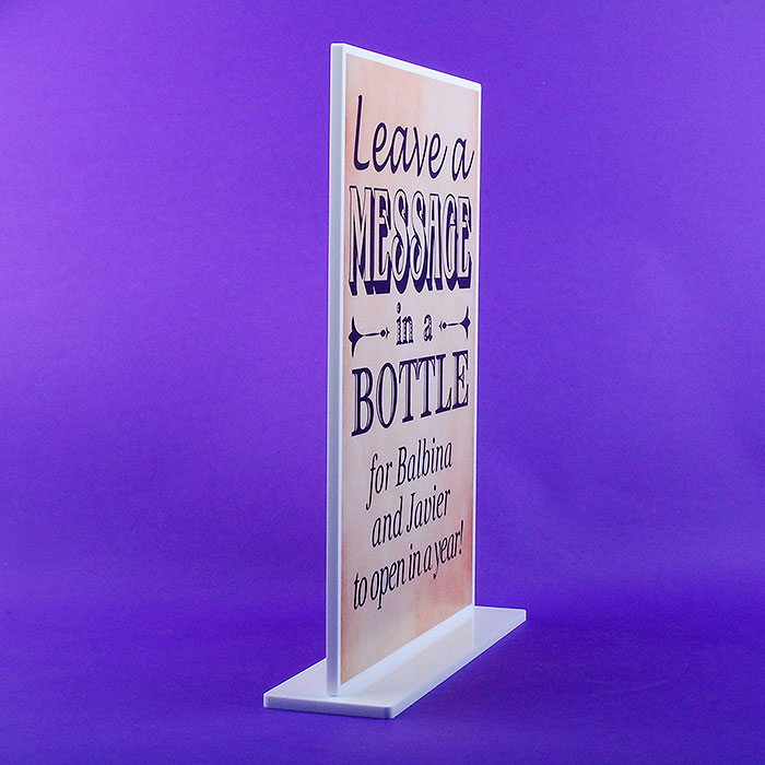 Custom made PERSPEX display for a particular wedding, with design: MESSAGE IN A BOTTLE.