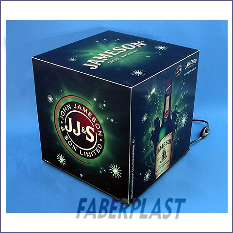 Lamp table JAMESON, made of translucent Acrylic plexiglass (Perspex-pmma) printed in four-color digital printing and low consumption light.