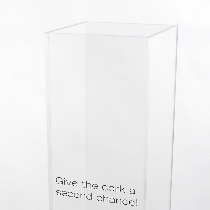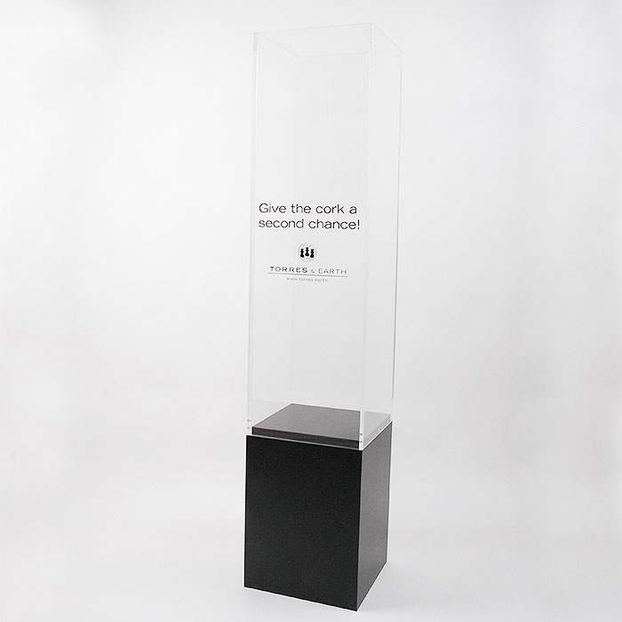 Perspex showcase container made to measure for TORRES wine to contain recycled bottle corks.