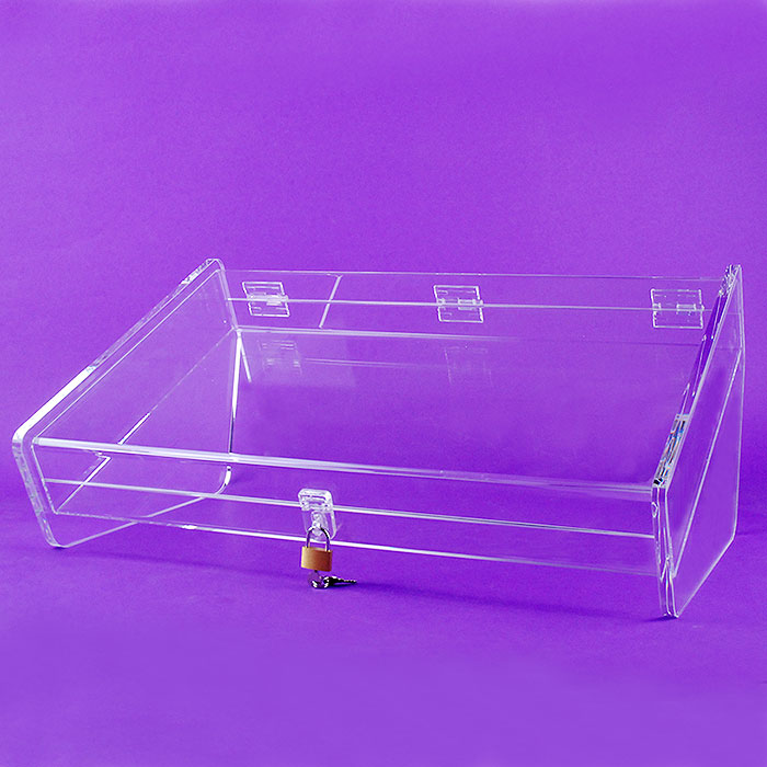 Manufacture to measure and of artisan form with plates of transparent perspex (Plexiglas-pmma) of different thicknesses. Includes security lock and hinged door.