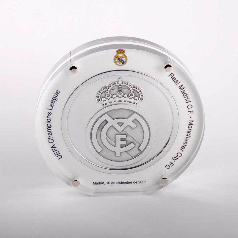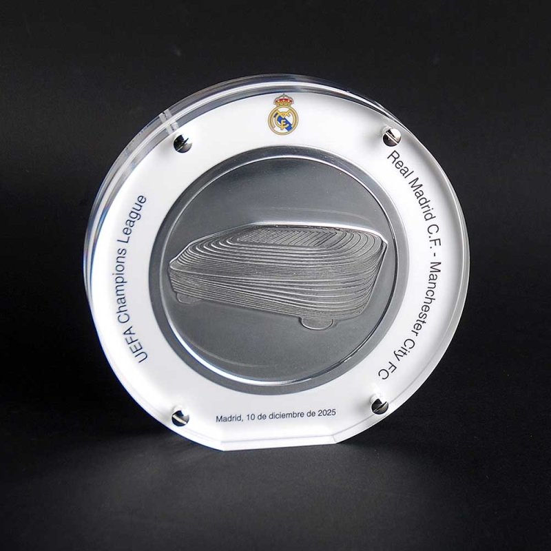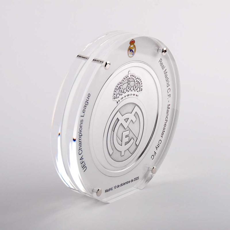 The round design conveys balance, prestige, and continuity, while the digitally printed logo, using high-quality, durable ECO-UV inks with vibrant colors and deep color depth, allows the brand to stand out with great precision. Its modern and understated aesthetic makes it a perfect piece for official tributes, anniversaries, sporting competitions, and corporate recognition.