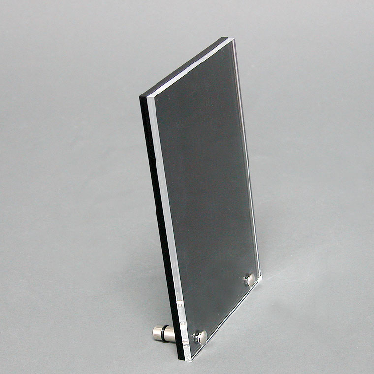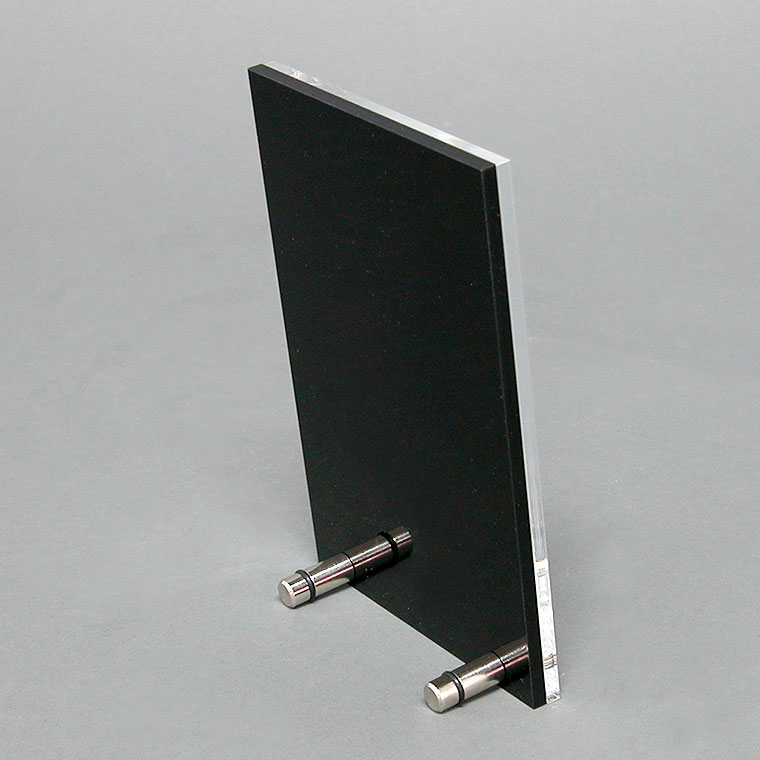 Manufactured with plates of black perspex and transparent perspex (Plexiglas-pmma) joined by support steel pins that keep the set inclined, being valid to place images or sheets.
