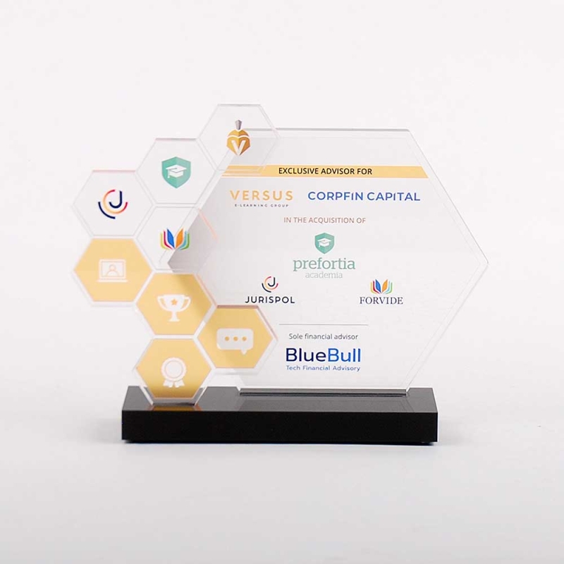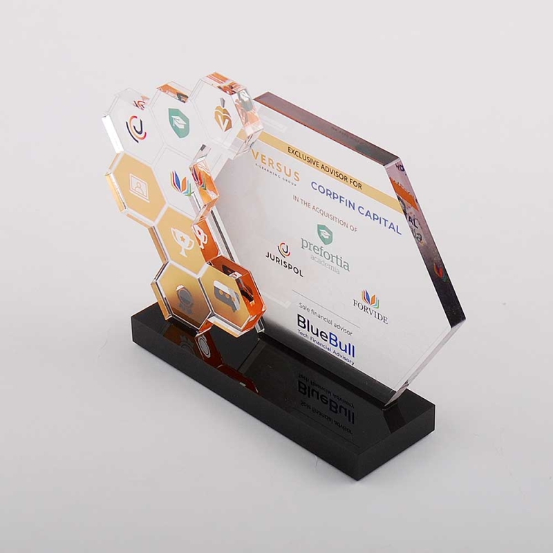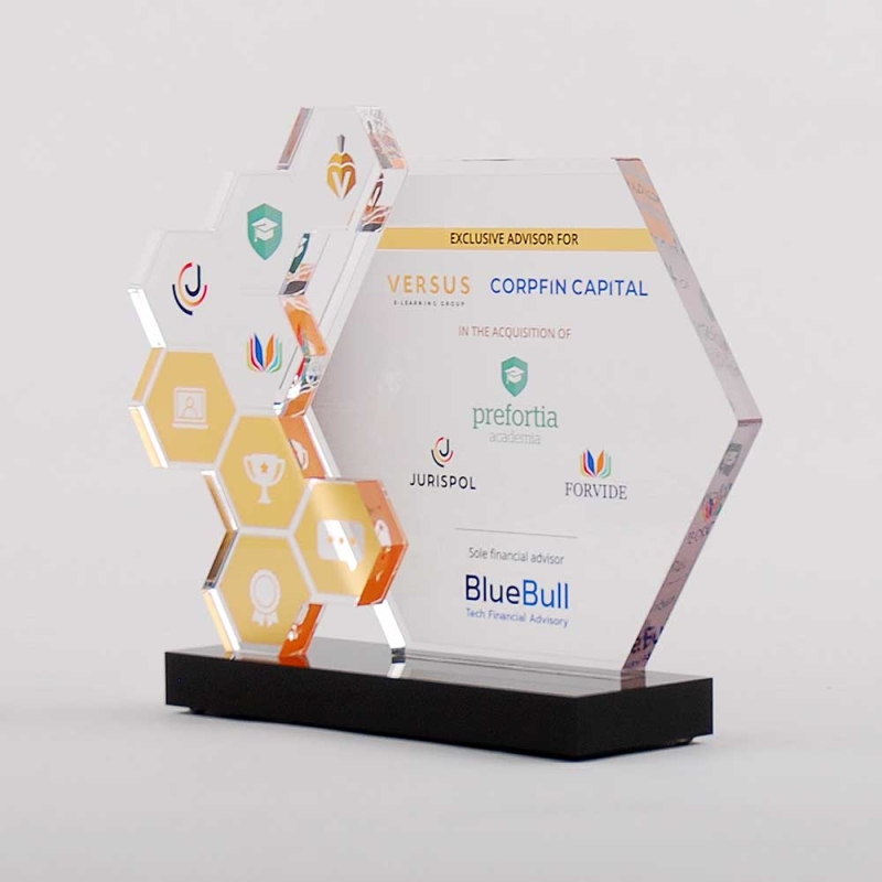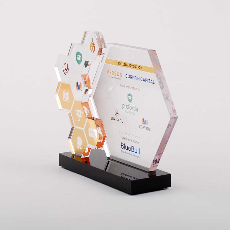 Acrylic plexiglas trophy made ad-hoc for the company BLUEBULL and other associated brands.
