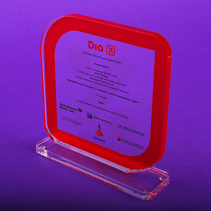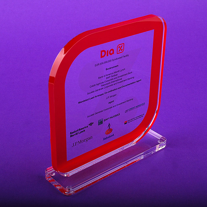 Corporate PERSPEX trophy made to measure for the DIA company.