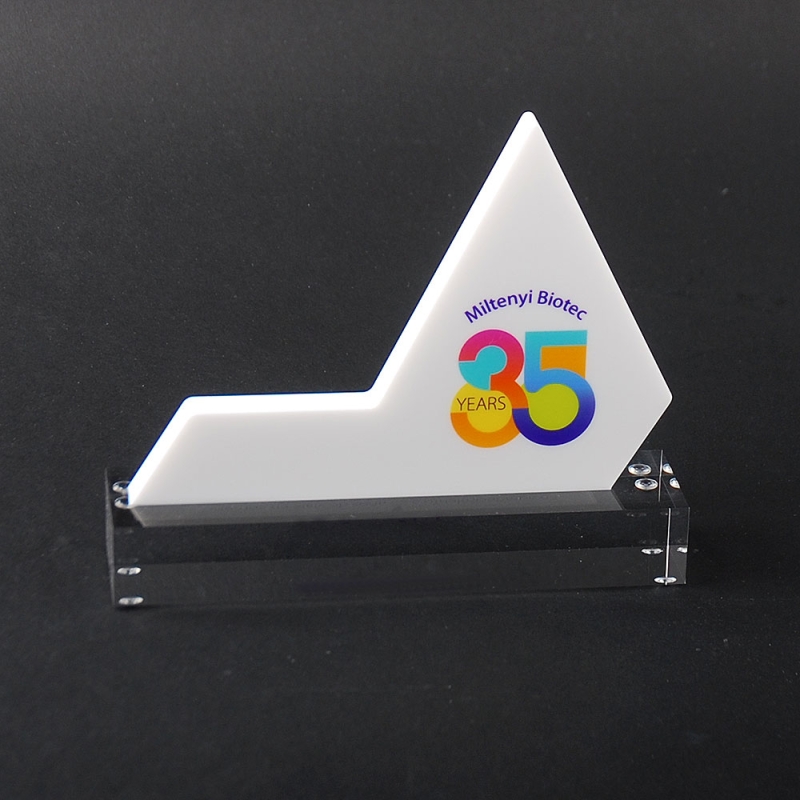 Acrylic plexiglas trophy made ad-hoc for the anniversary of MILTENYI BIOTEC.