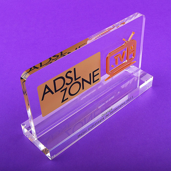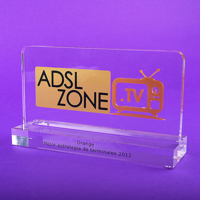 Perspex trophies for the delivery of ADSL ZONE awards for the ORANGE company.