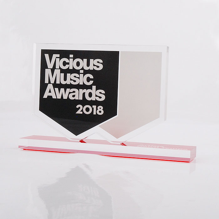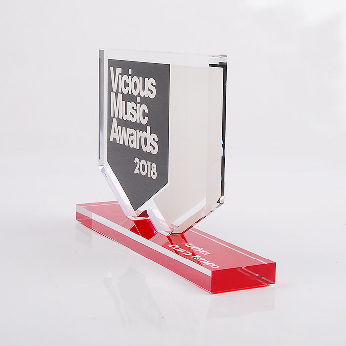 Perspex trophy made ad-hoc for the prestigious Latin American electronic music awards event: VICIOUS MUSIC AWARDS 2018