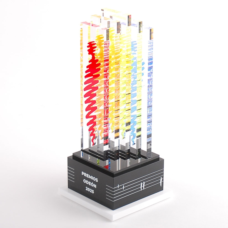 Acrylic plexiglas trophies made ad-hoc for the ODEON awards.