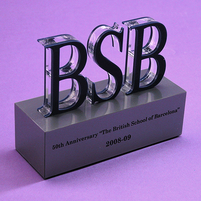 Perspex trophy made ad-hoc for the company BRITISH SCHOOL BARCELONA.