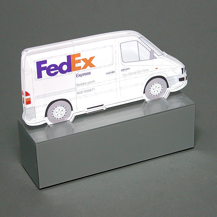 Perspex trophy made in a personalized way for the international transport company FEDEX.
