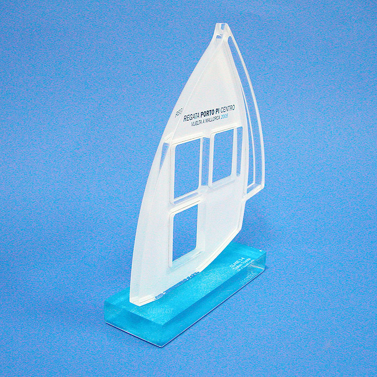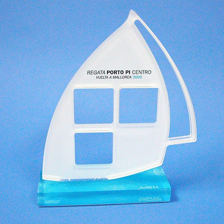 Plexiglas trophy made to measure in 3 sizes on the occasion of the REGATA PORTO PI in the return to the island of Mallorca in 2005.