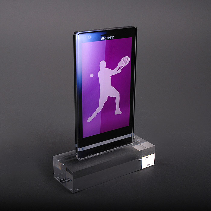 Perspex trophy made for the SONY company on the occasion of the launch of a new smartphone.