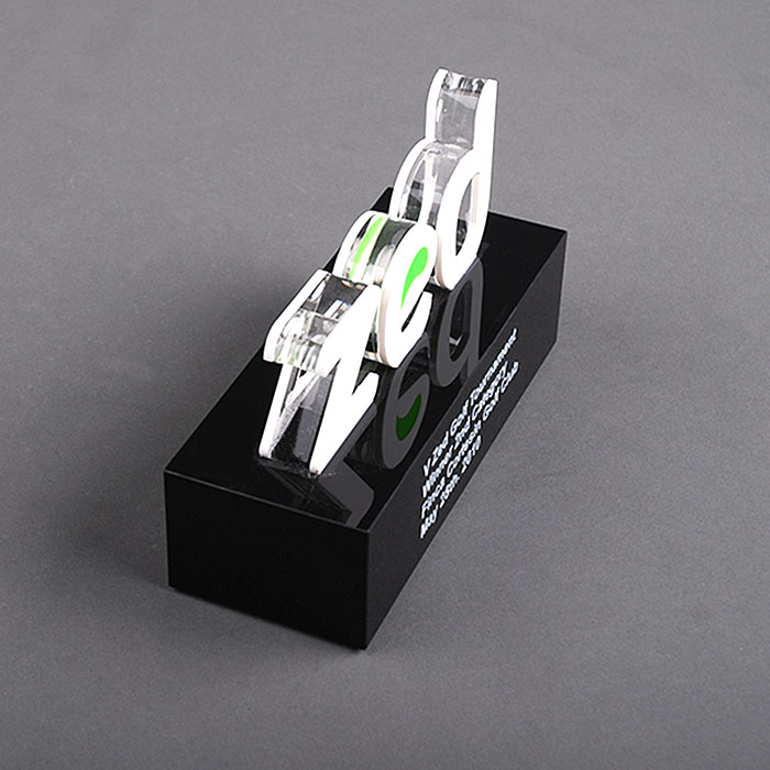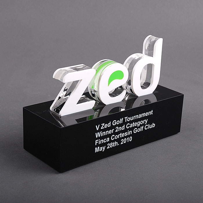 Perspex trophy made ad-hoc for the ZED company on the occasion of the golf tournament awards.