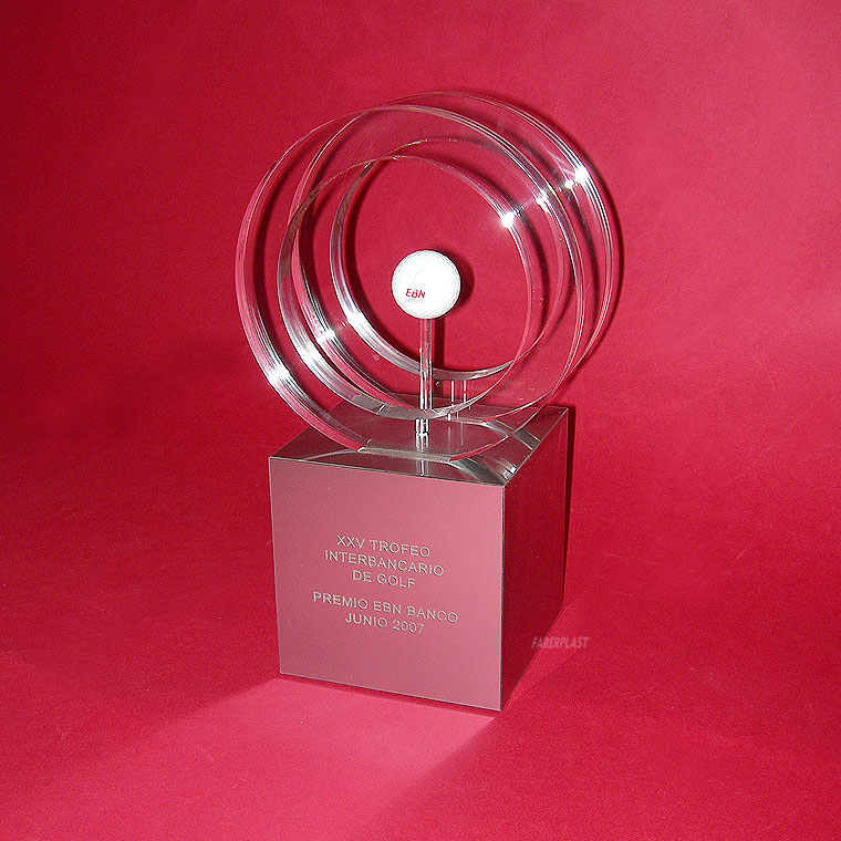 Acrylic plexiglas trophy made to measure for the EBN BANK on the occasion of an interbanking golf tournament.